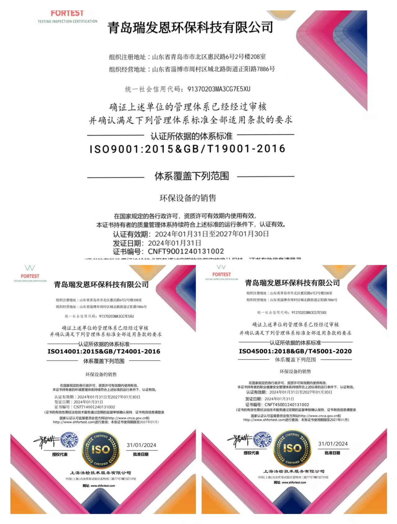 公司已經通過環保,質量,安全三項認證,并獲得AAA信用等級認可、綠色環保推薦產品、售后服務五星企業證書。